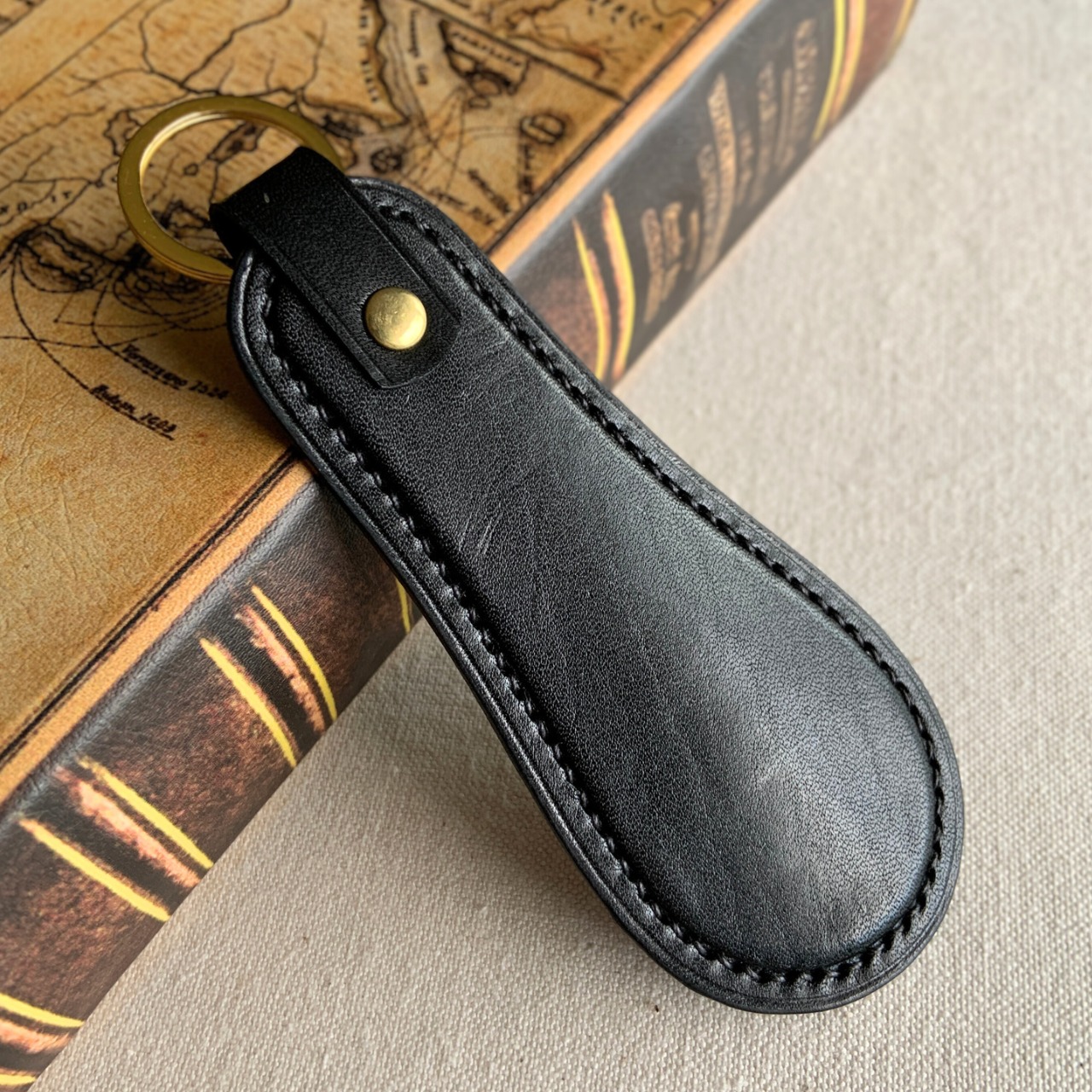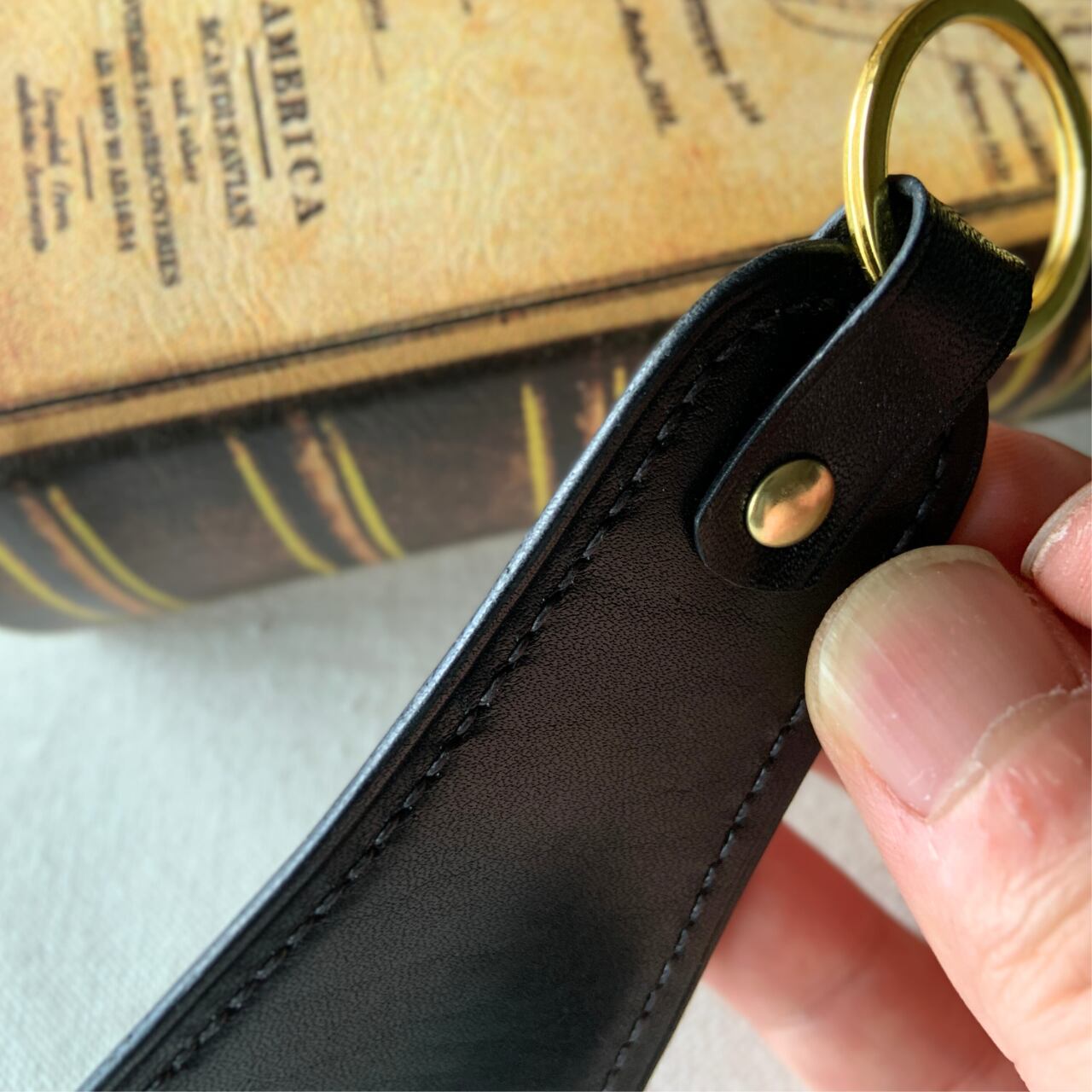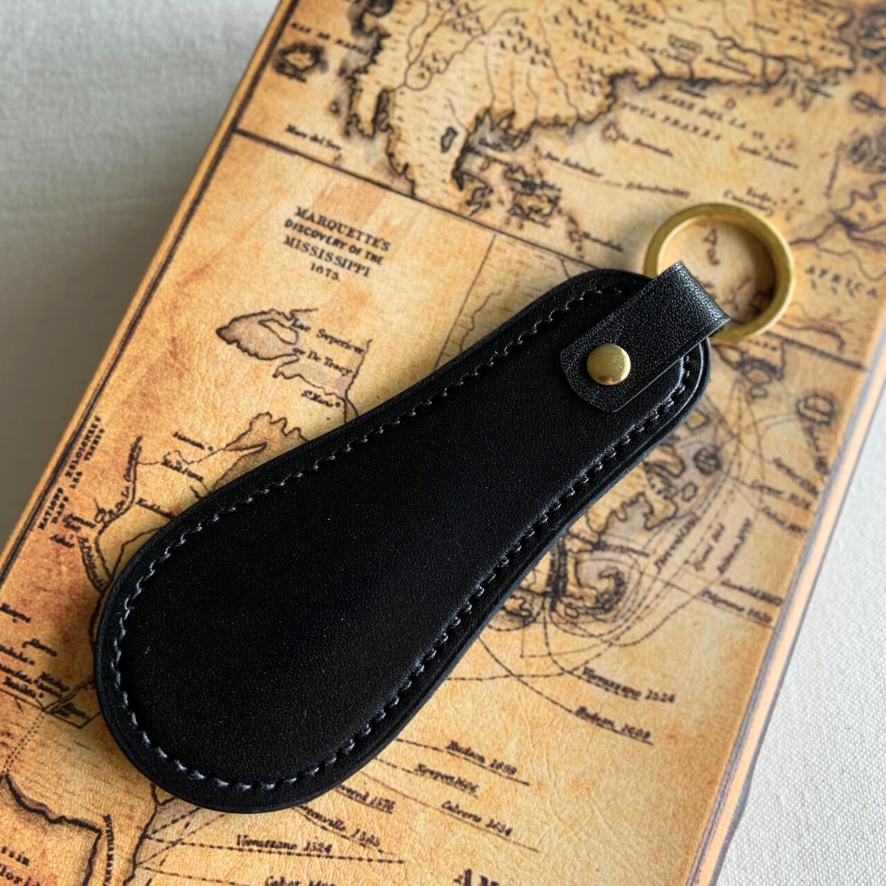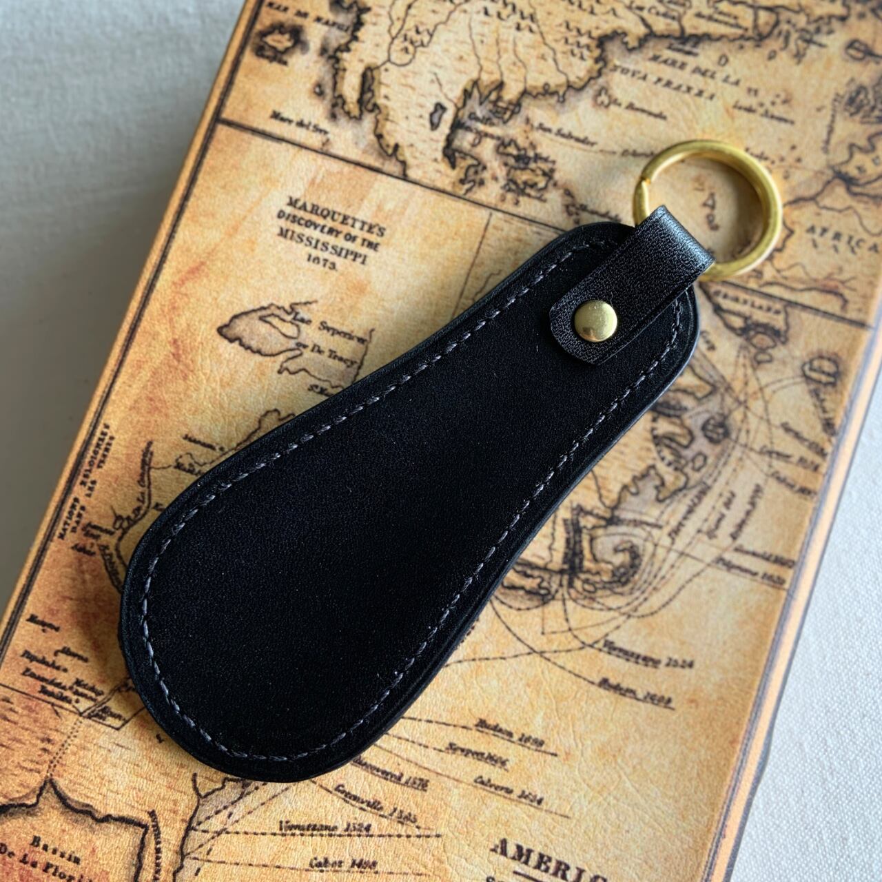 【Black×Gold】靴職人特製二重リング付きレザー靴べら